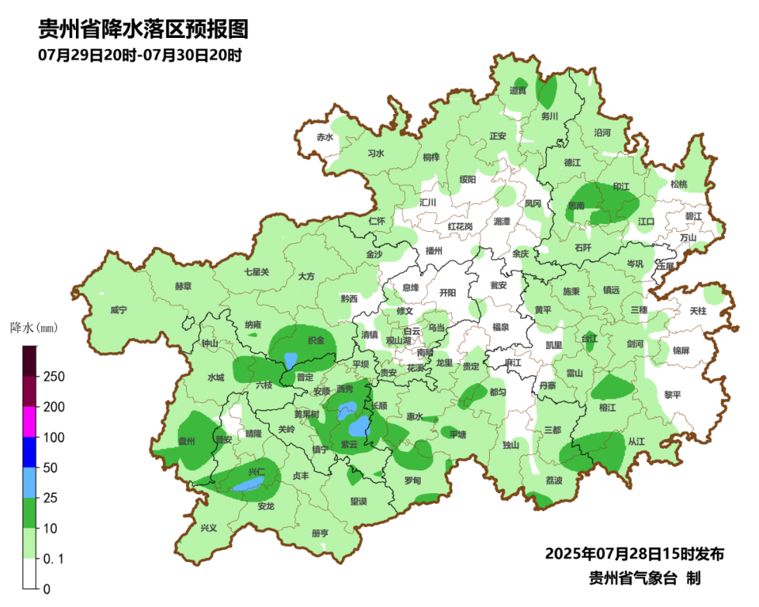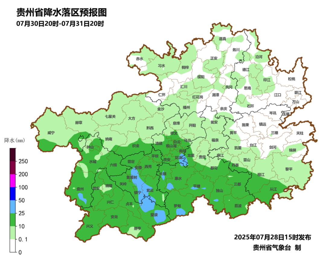30日夜间到31日白天,省的南部地区阴天间多云有阵雨或雷雨,局地有中到大雨,个别乡镇有暴雨,其余地区多云有分散阵雨或雷雨;