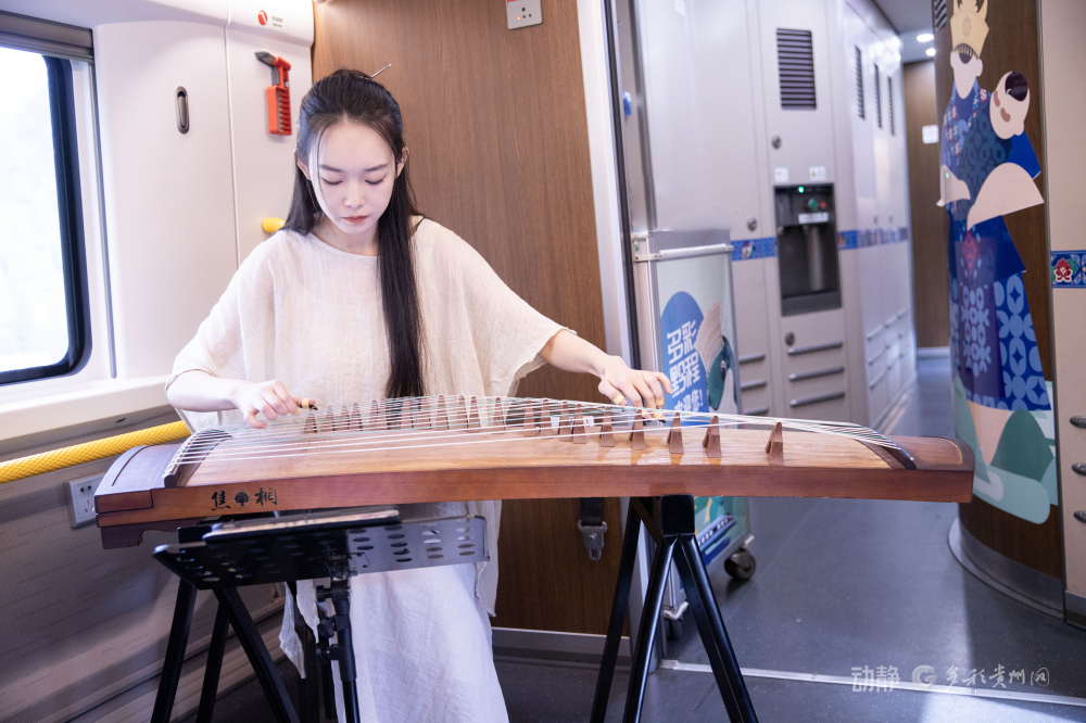 随着讲解的深入,车厢内响起清悦的古筝声。文艺骨干陈珂馨指尖轻拨,《渔舟唱晚》的婉转旋律伴随着窗外青山,让车内乐声潺潺,旅客沉浸其中。列车长高慧介绍,此次选曲融合了传统与现代,既呼应节日主题,也为快节奏的旅途注入片刻宁静。
