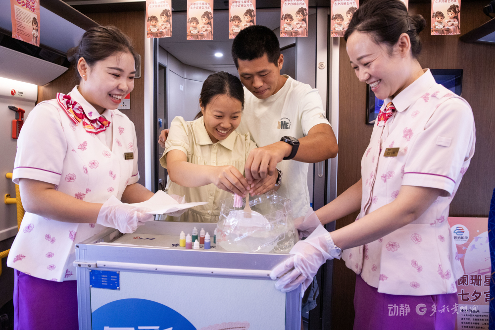 “我们希望通过轻量化、互动性强的方式,让传统文化‘活’起来,也让旅客感受到铁路服务的温度。”列车长高慧说,“近年来,车队结合春节、端午等传统节日,持续推出‘列车上的中国节’系列活动,此次七夕活动从策划到执行仅用一周,收获了超预期的反响。未来我们将进一步挖掘沿线文化资源,让列车成为‘流动的文化展厅’。”