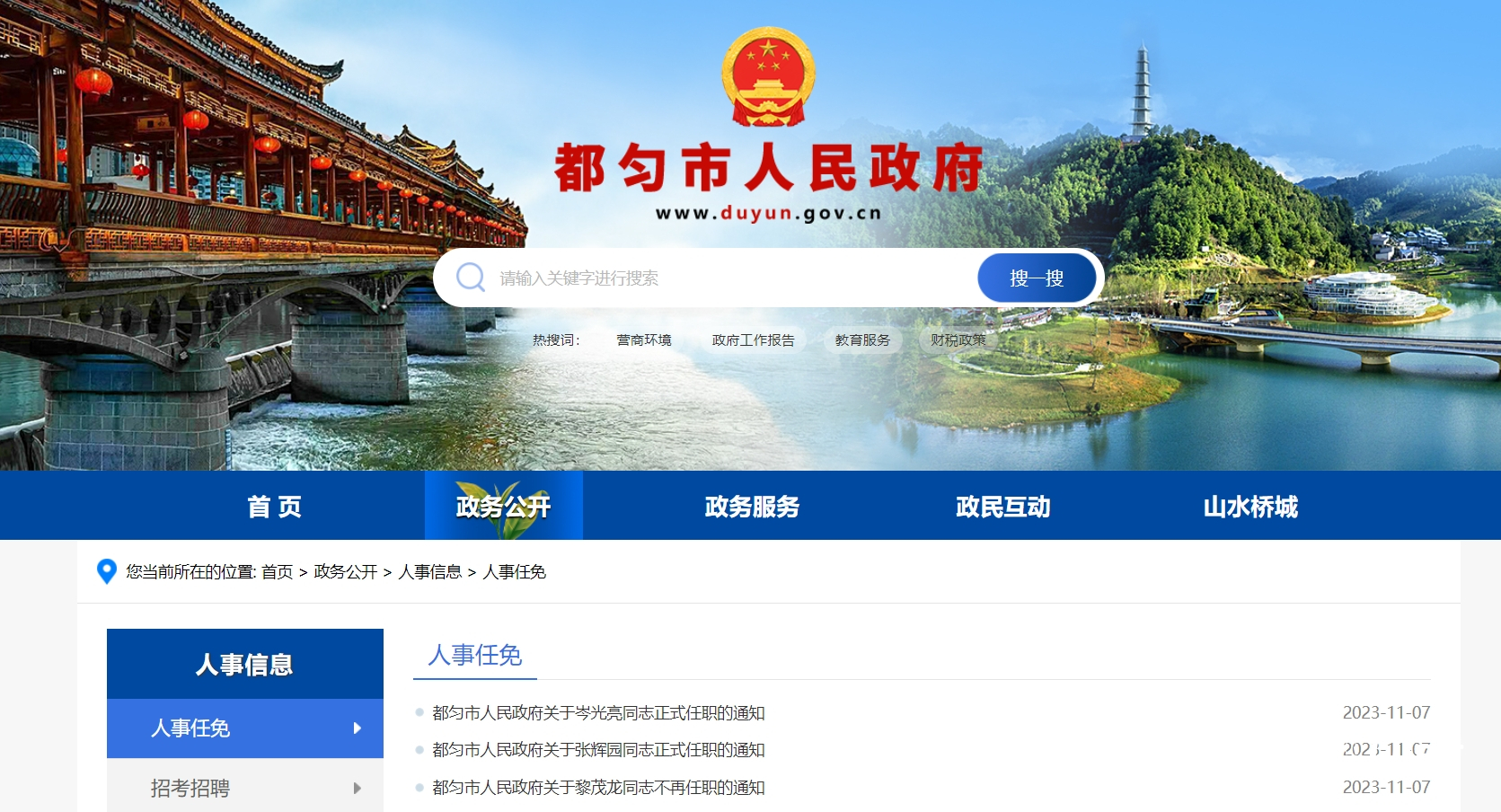 11月7日,都匀市人民政府网公布了三则人事任免通知。