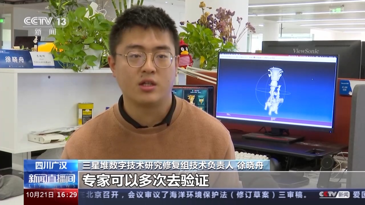 专家介绍,目前三星堆遗址已经发掘的面积,只占到整个遗址区的千分之二,发掘并研究好中华文明的巨大宝藏仅依靠人力很难实现。文物专家同数字技术团队一起探索出更多智能化的新手段,在破碎文物拼接,复杂器型样品制作上大显身手。