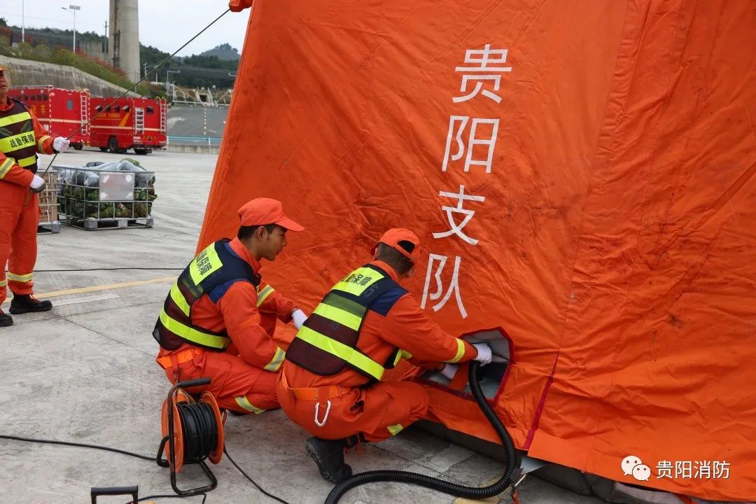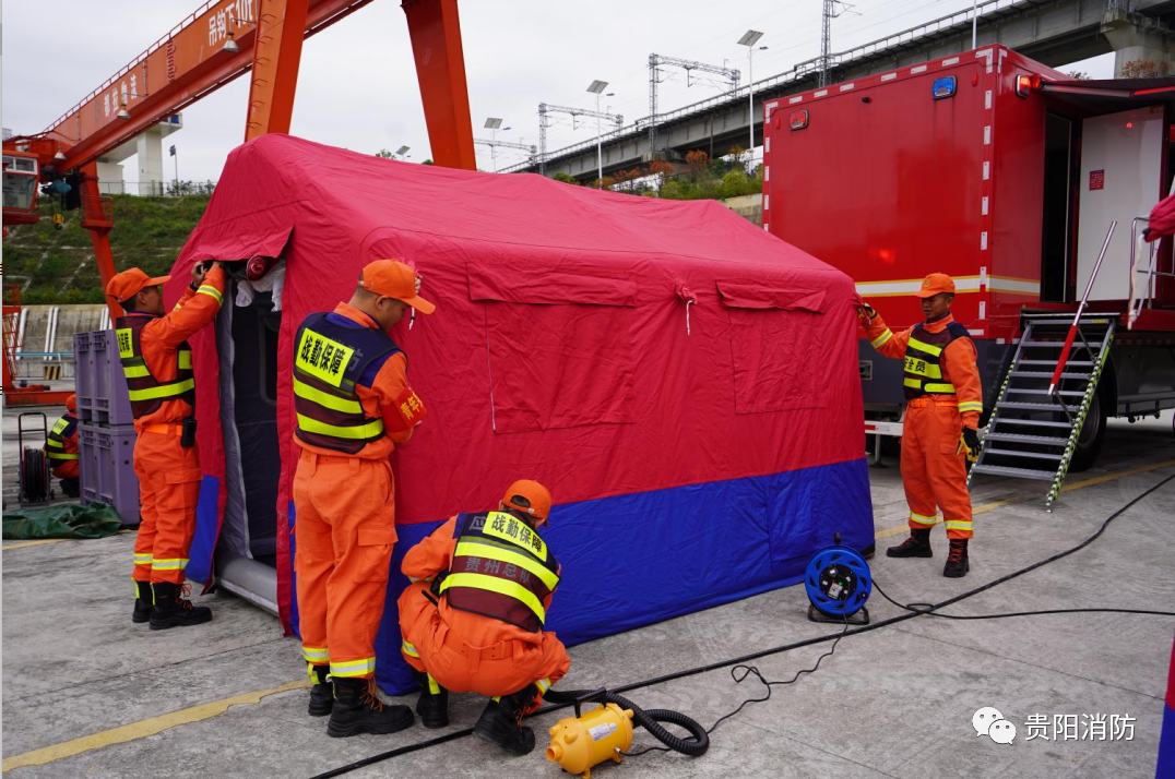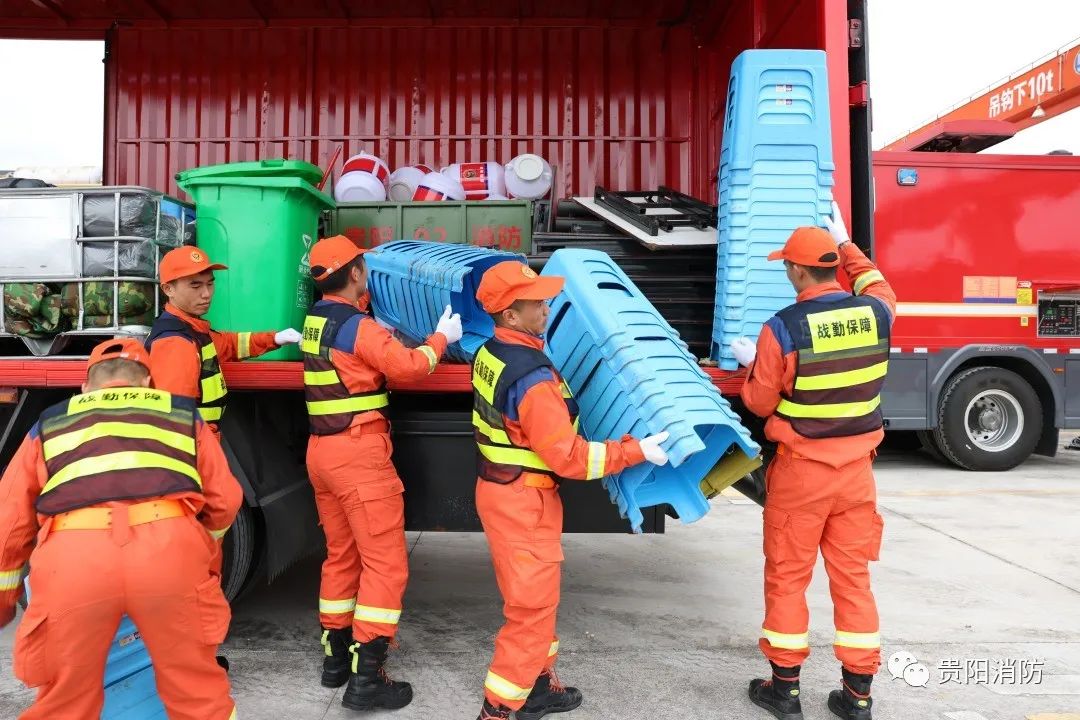 10月20日9:00分,贵阳市消防救援支队接到总队下达2023年全省消防救援队伍“ 两线并进”重特大跨区域地震救援实战拉动战勤保障演练调度命令,贵阳市消防救援支队迅速集结支队战勤保障队伍11车30人,携带56类690余件套各类战勤保障装备物资前往演练地点,演练期间,支队参演队伍组织严密、响应及时、行动高效、保障全面 ,圆满完成了此次演练保障任务。