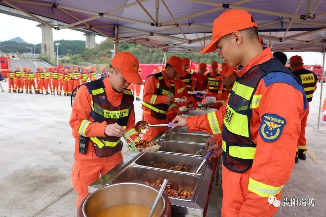 演练期间,支队保障队伍充分结合“黔中片区”参演支队协同保障特点,合理调剂参演人员的喜好营养,立足抢险救灾任务重、身体能量消耗快、营养能量需求高等特点,科学制定饮食保障计划,按照六菜二汤(四荤二素)的标准,精心制作营养成分高、品种式样多的菜品,丰富参演人员营养补给;合理设置能量补给站,制作暖身汤品,丰富保障措施,有效保障恶劣环境下参演人员身体健康,全方位提供营养搭配均衡,色香味俱全,保障物资充足的保障基础,向演练现场参演90余名消防救援人员提供了优质暖心的保障服务。