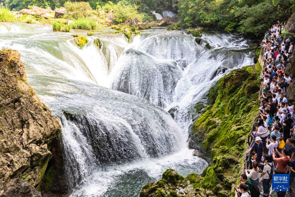 10月3日,游客在贵州省安顺市黄果树瀑布景区游玩。新华社发(陈熙 摄)
