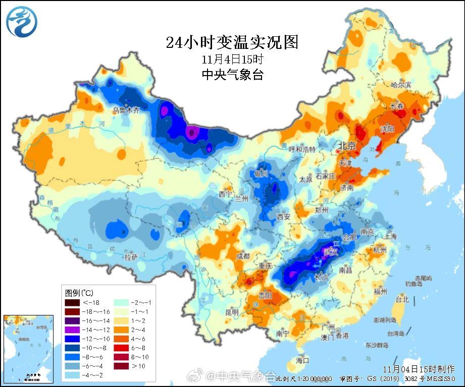 预计,4日20时至7日20时,西北地区中东部及中东部大部地区气温将下降6~10℃,其中,内蒙古中部和东部、东北地区中南部、江淮中东部等地部分地区气温将下降12~14℃,吉林西南部、辽宁西北部、内蒙古东南部等地局地降温可达16℃以上;最低气温出现在7日早晨,最低气温0℃线将位于河北北部、北京南部、山西南部至陕西关中平原、甘肃东南部一带,长江中下游沿江大部地区最低气温将降至10℃左右。长江中下游以北地区有4~6级偏北风,阵风7~9级,局地可达10级。