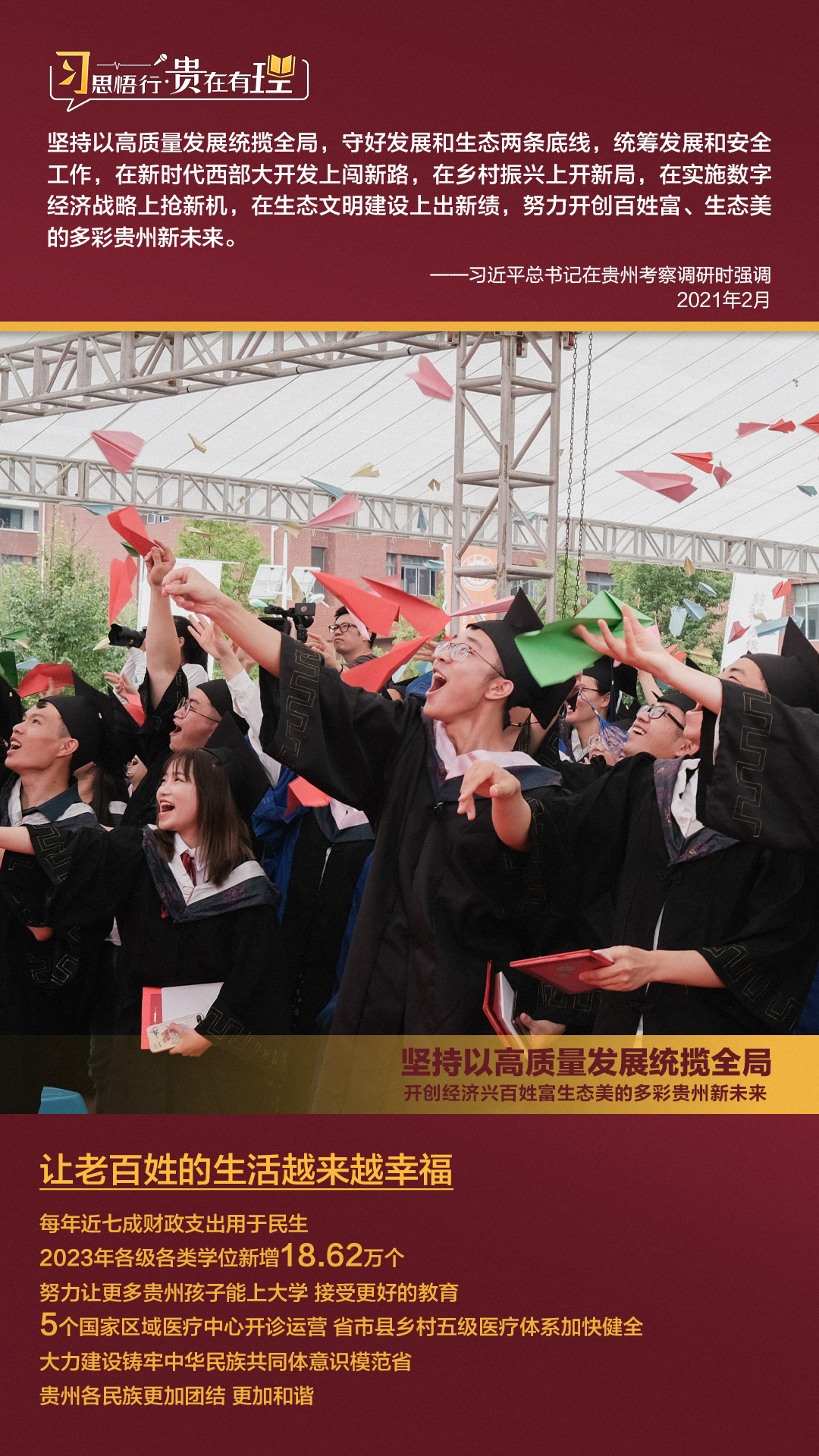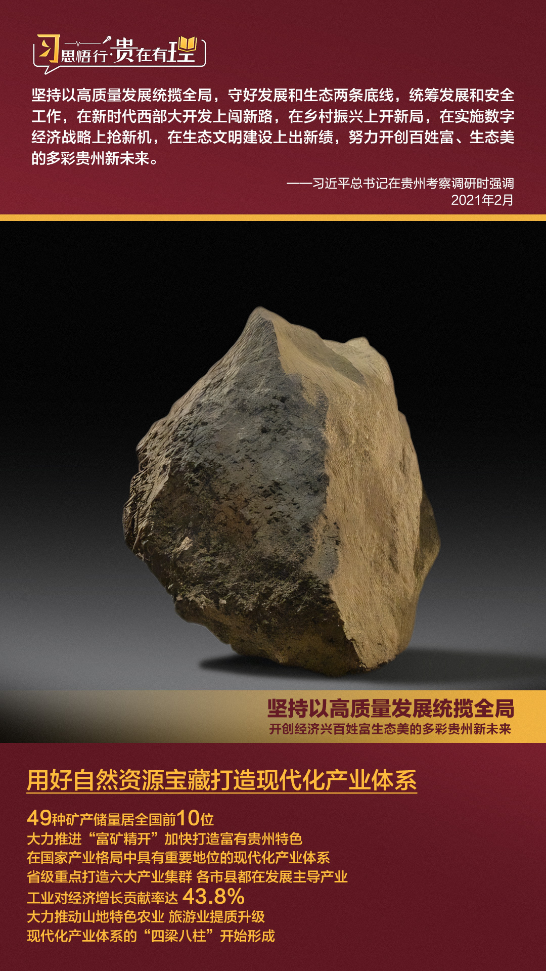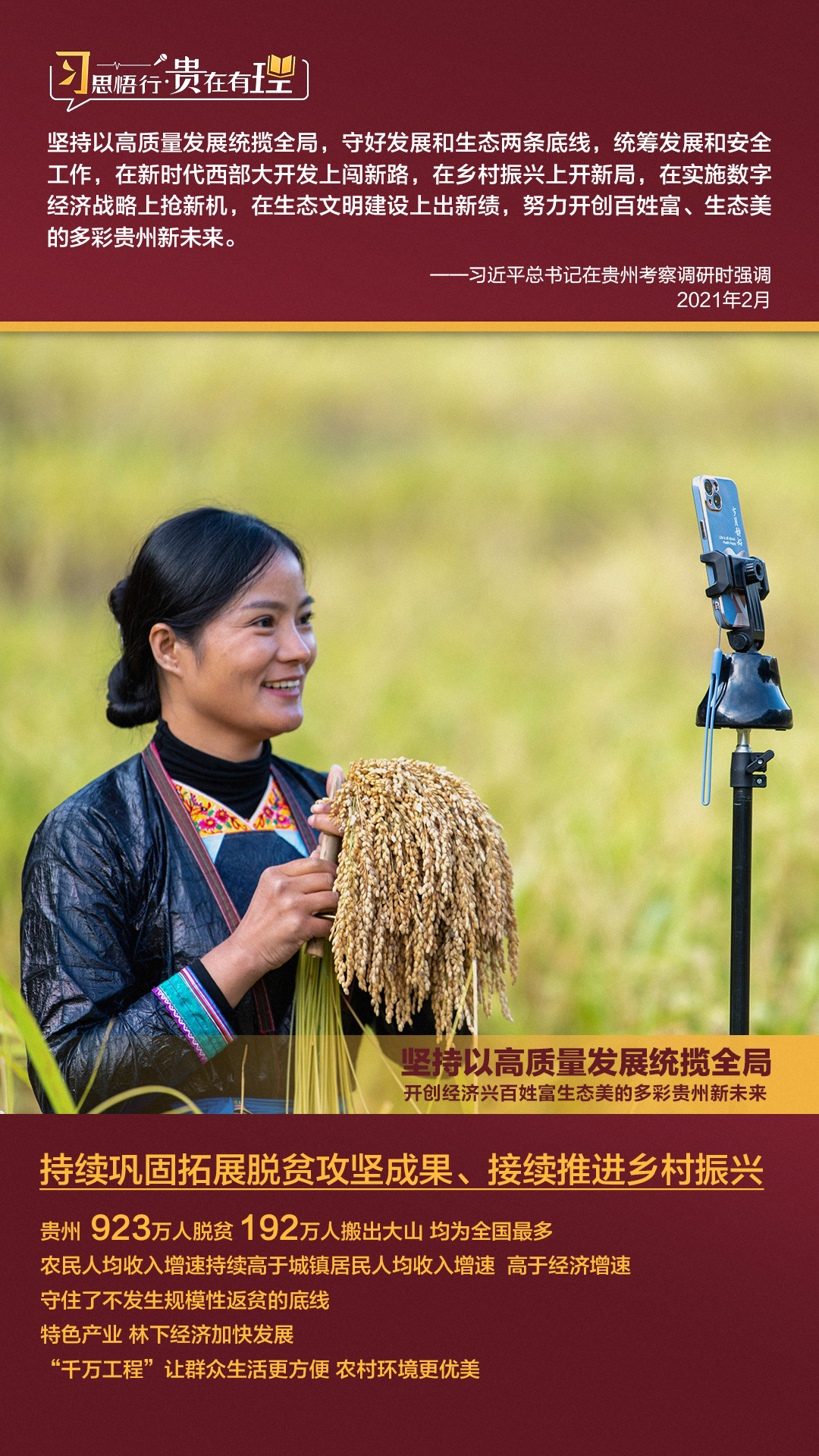 近年来,贵州把工作重心从以脱贫攻坚统揽全局转到以高质量发展统揽全局上来,坚定围绕“四新”主攻“四化”(新型工业化、新型城镇化、农业现代化、旅游产业化),在巩固脱贫成果的前提下,加快转变发展方式,改变以投资拉动为主的增长模式,在新发展格局中找准定位,推动经济实现质的有效提升和量的合理增长,经济总量迈上了2万亿元新台阶,高质量发展成为贵州的主旋律。
