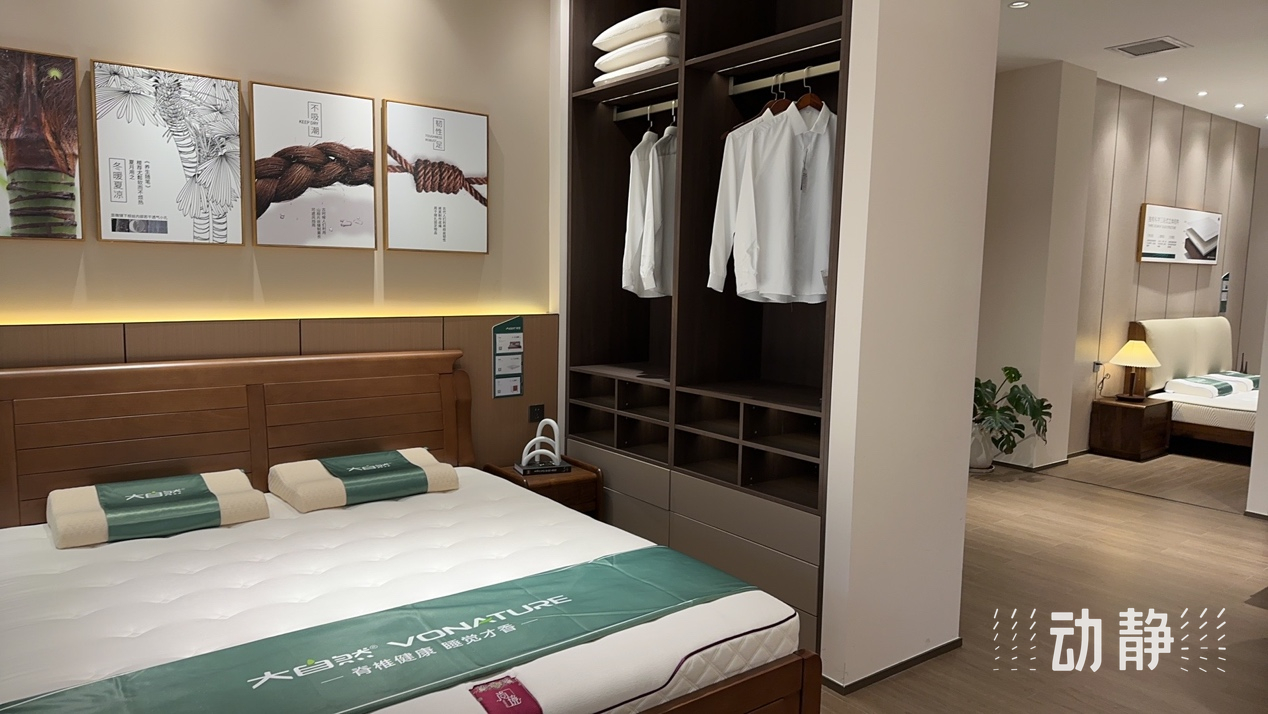 大自然科技股份有限公司产品开发经理张尚伟介绍了床垫主体的特性,“它是用植物纤维和天然乳胶制成,它的透湿率也比普通的金属弹簧高12%,耐久性能高92%,而国家标准要求为90%,高于国家标准。我们制作的新一代多段式睡眠结构,它的重量比普通植物床垫要轻20%,舒适性也得到了提升”。
