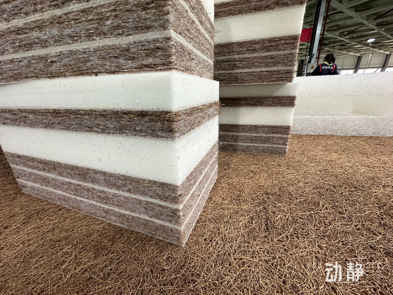 在贵阳市高新区沙文工业园区生产厂房内,4条生产线正开足马力生产,一根根棕树在经历了棕丝分解、喷淋乳胶、加热定型等几十道工艺后,变成为了具有三维空间网状结构的床垫。