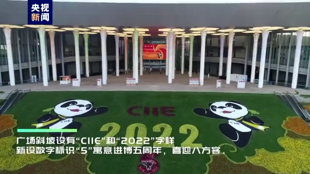 广场斜坡处,“CIIE”和“2022”字样、四层梯田花海、迷宫花园等多个主题花园采用橙色孔雀草、黄色百日草、金叶佛甲草、角堇等各色花卉植物来演绎祥云、渐变云山的纹样效果。新设的数字标识“5”由彩叶草配合亚克力材料组合打造而成,寓意进博五周年,喜迎八方来客。