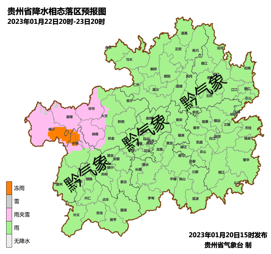 22日夜间到23日白天,全省阴天有小雨,西北部有冻雨或雨夹雪,地势高处有道路结冰;