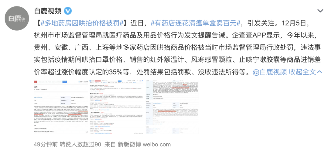 值得注意的是,今年以来,已有多家药店因哄抬价格被处罚。