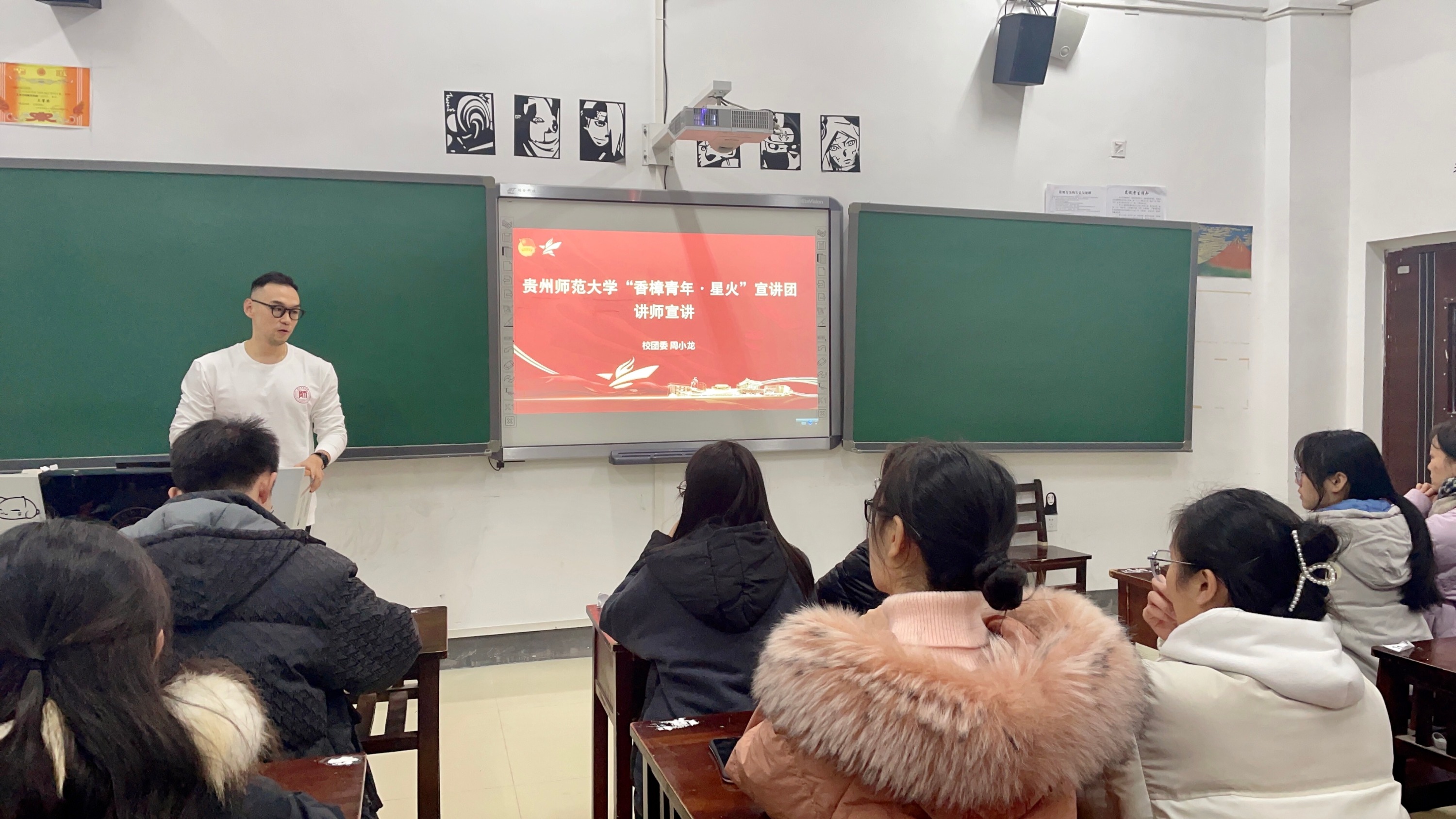 青年在哪里,思想引领的阵地就延伸到哪里。依托贵州师范大学团委官方微信公众号——全国首批高校思政类重点建设微信公众号“香樟青年”开设“星火宣讲团”专栏,充分发挥新媒体优势,定期推送“党的二十大精神微宣讲”系列短视频,以“理论+融合”“网络+宣讲”的形式,把“面对面”的理论宣讲变成“屏对屏”的云端互动,实现了党的创新理论在学校共青团全领域学习、三校区全地域覆盖。