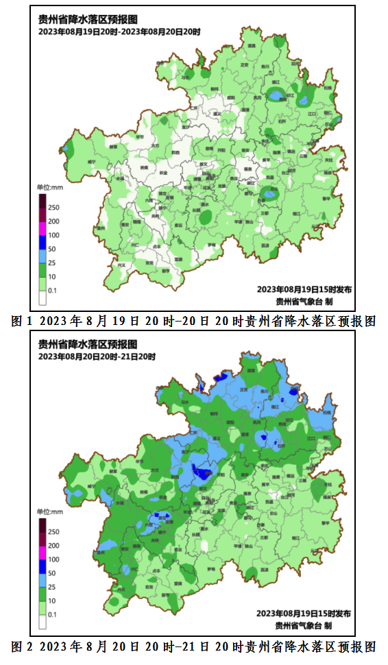21日夜间到22日白天,省的南部地区阴天间多云有阵雨或雷雨,局地有中到大雨,个别乡镇有暴雨,其余地区多云有分散阵雨或雷雨,省的东部个别县市和赤水河谷有35℃以上高温天气。