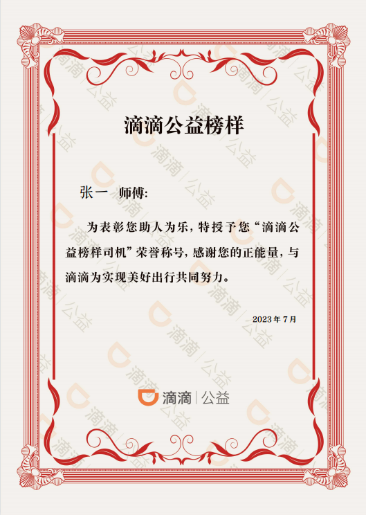 刚刚,滴滴平台也发布了奖励通知:为了表扬张师傅助人为乐的行为,滴滴出行将授予其“滴滴公益榜样司机”称号,“滴滴正能量在路上专项公益计划”将给予师傅现金1000元奖励,鼓励其正能量行为。