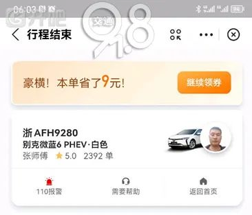 不到五分钟,一辆车牌为浙AFH9280的滴滴快车停在了刘先生的身边。通过平台的准确定位,滴滴司机在杭海路的九福路口接上了刘先生。