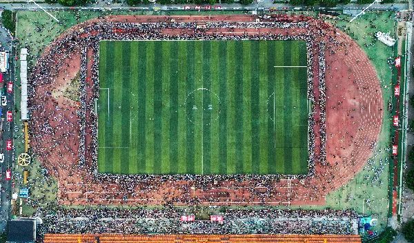 记者看到,每逢比赛夜,华灯初上,“村超”球场内便摩肩接踵、人山人海;欢笑声、呐喊声、敲锣声、击鼓声,各种声音混杂在一起,阵阵激荡。球场围网外,同样人潮涌动,榕江县城多个地方还设置了直播大屏,供大批挤不进场的市民和游客观看。