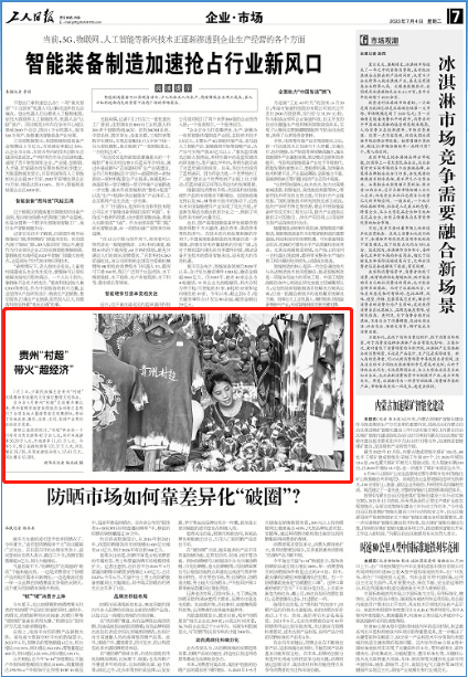 今天(7月4日),《工人日报》刊发新闻《贵州“村超”带火“超经济”》,报道说,自今年5月贵州“村超”足球赛开赛以来,贵州省黔东南苗族侗族自治州榕江县吸引了全国各地大量游客前往观赛游玩,带动了当地旅游、餐饮、住宿、文创、农特产品等行业的经济发展。