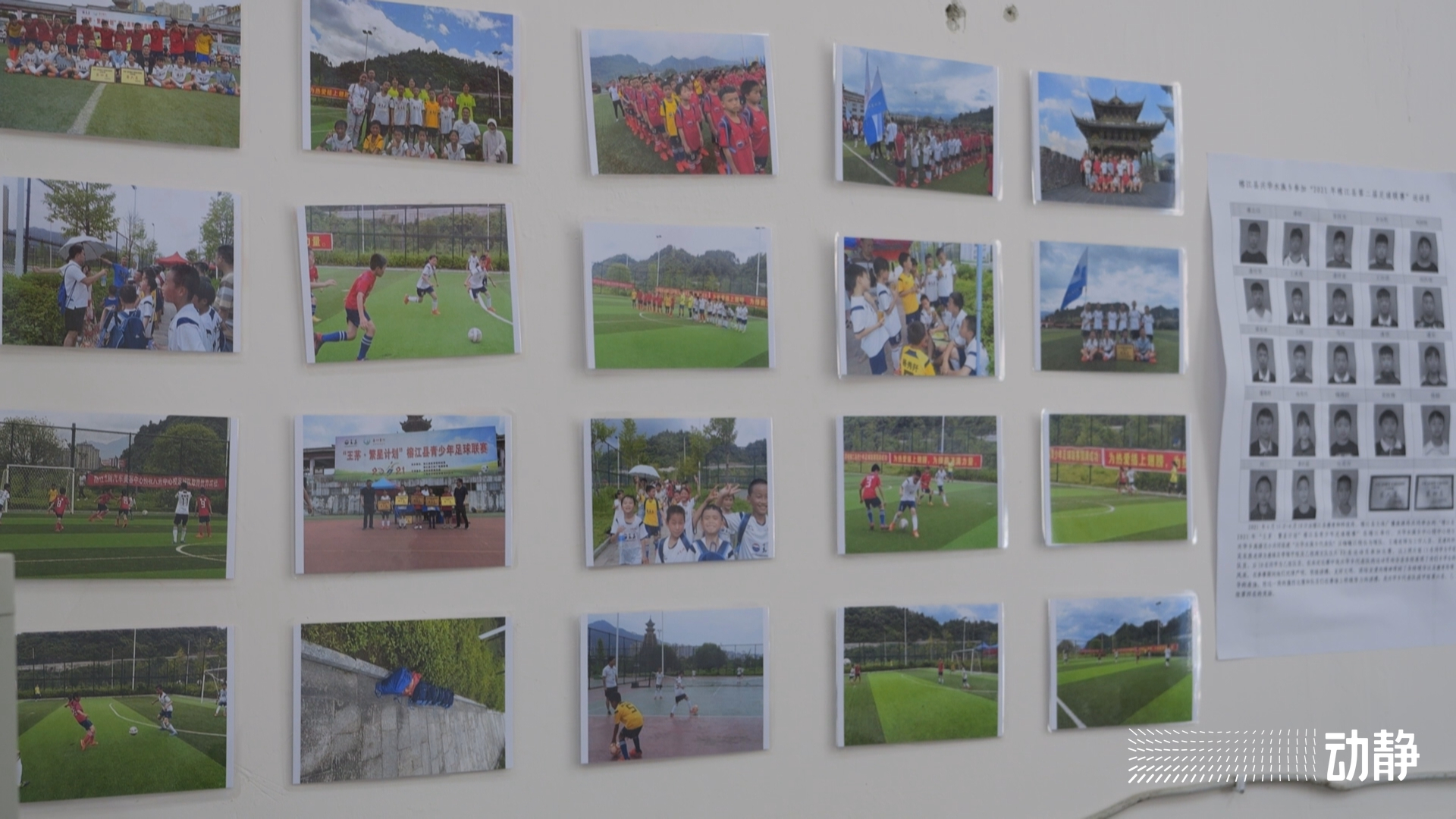 吴东胜其实是个95后,总在球场风吹日晒使他有点显老。两年来,球队壮大到50名人。今年,孩子们还拿下了县里校足球队比赛第3名,吴东胜清楚记得每个孩子成长的点滴。每次比赛他都会给每个孩子拍照留念,并做成照片墙。就是为了让孩子们长大后能够有所回忆。