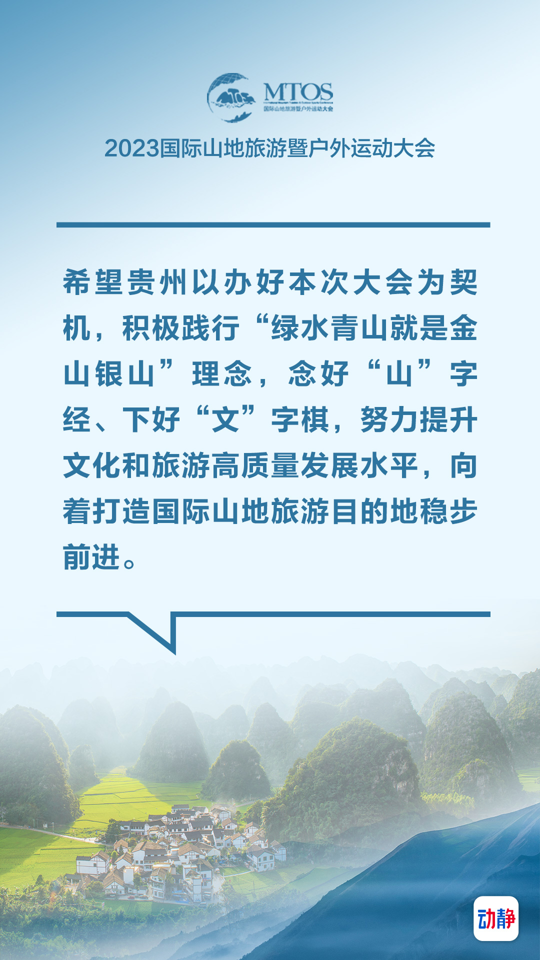 胡和平希望贵州以办好本次大会为契机,积极践行“绿水青山就是金山银山”理念,念好“山”字经、下好“文”字棋,努力提升文化和旅游高质量发展水平,向着打造国际山地旅游目的地稳步前进。