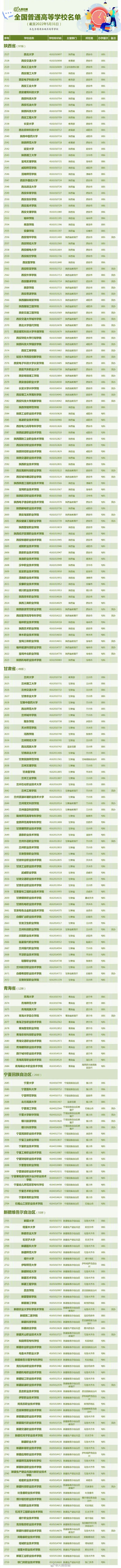 截至2022年5月31日,全国高等学校共计3013所,其中:普通高等学校2759所,含本科院校1270所、高职(专科)院校1489所;成人高等学校254所。本名单未包含港澳台地区高等学校。