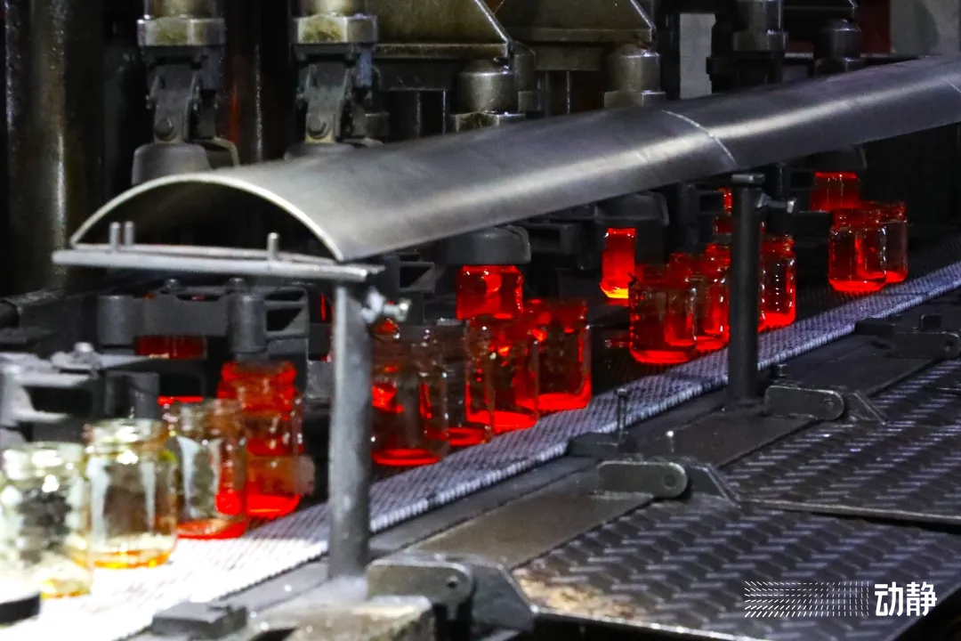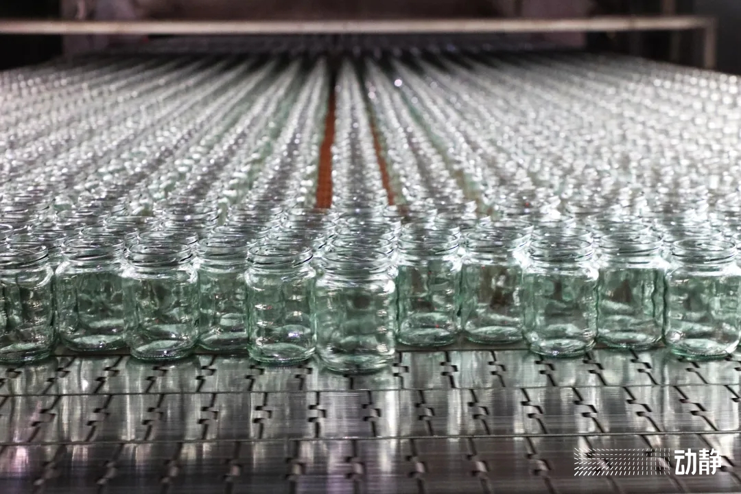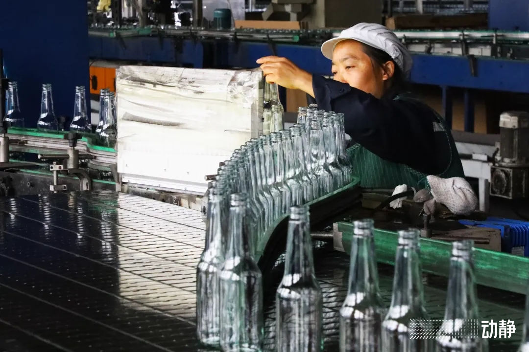 在生产线上,两个玻璃窑炉不停歇,迅速将按配方比例自动混合的纯碱、石英砂、废玻璃渣等原料熔化为玻璃液。7条生产线火力全开,通过供料、成型、退火、检验、包装完成玻璃瓶的制造,工人们以饱满的热情,开足马力忙生产赶订单。