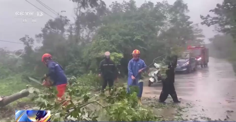 受此次台风影响,多地道路因强风折断树木而受阻,救援力量迅速行动,采用电锯切割,牵引拖拽等方式清理受阻道路,保障道路畅通。