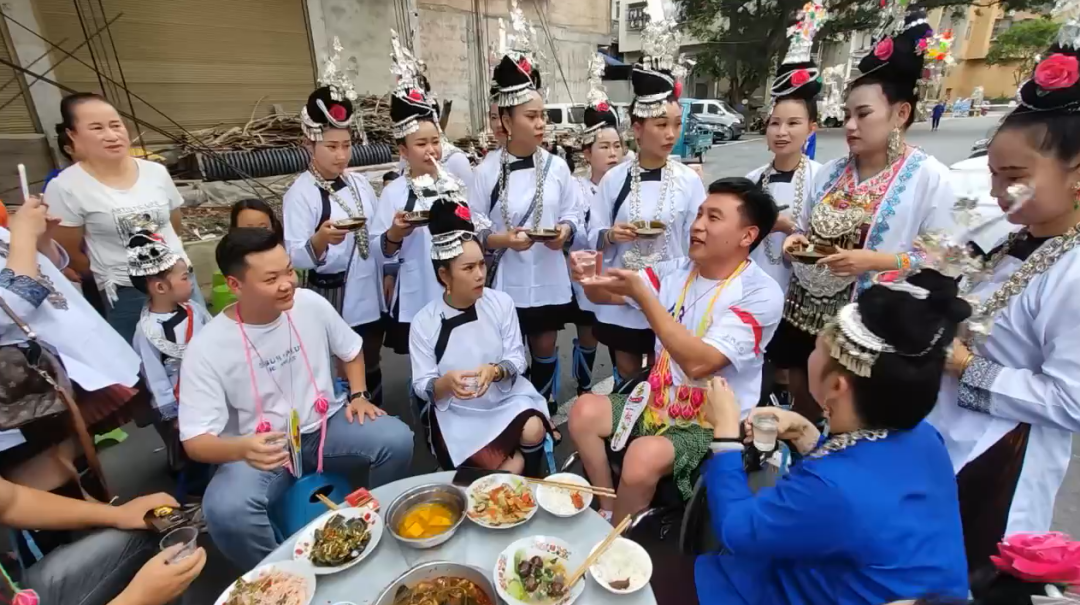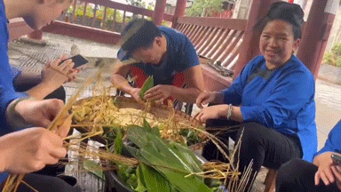 当地人们热情邀请狄文科一起品尝当地美食
