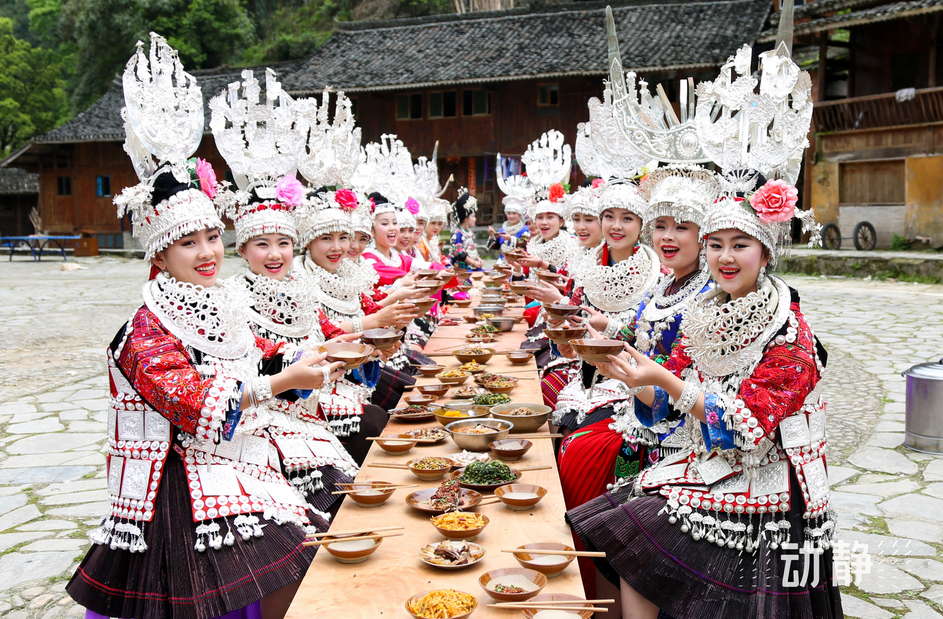 内容:长桌宴是苗族宴席的最高形式与隆重礼仪,表达苗疆人民的热情好客,让宾客共享苗疆美食,感受苗族风情。以“苗乡六酸”为主菜,搭配当地特色美食。在翁你河两岸摆满200米长桌宴,迎天下宾朋。