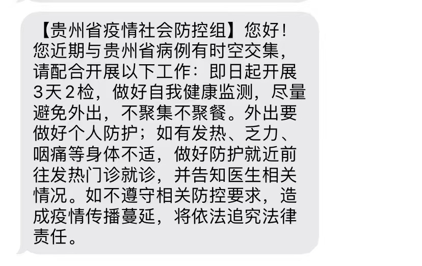 被赋黄码后,无需恐慌,请按照贵州省疫情社会防控组发来的短信提示,做好相关事项即可。根据短信提示做完核酸检测,若结果均为阴性,后台系统会自动将黄码转为绿码。