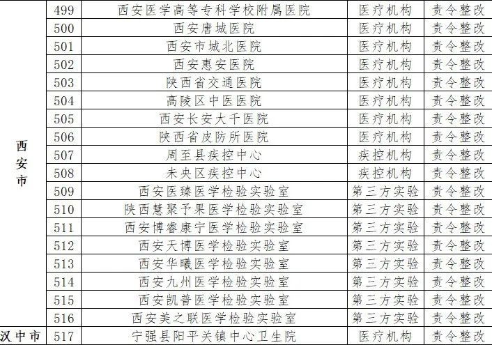 近日,陕西省应对新型冠状病毒感染肺炎疫情工作领导小组医疗救治组公示陕西省核酸检测机构排查整顿情况,其中排查整顿结果“合格”机构498家,“责令整改”机构19家。
