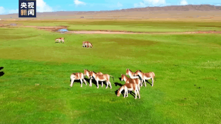 近日,在青海果洛州玛多县境内的冬格措纳湖附近,记者拍摄到了近百只藏野驴成群活动的场景。画面中,成群的藏野驴时而低头吃草,时而闲庭信步漫步草原,时而集体奔跑,场面壮观。藏野驴活动的地区为冬格措纳湖附近,平均海拔4000米以上,充沛的水源和丰美的水草为藏野驴提供了良好的生存条件。藏野驴属于国家一级保护动物,也是所有野生驴中体型最大的一种,头短而宽,四肢粗壮。成年藏野驴体长可达2米多,体重在250至400公斤。它们喜欢群居生活,对寒冷、日晒和风雪具有极强的耐受力。
