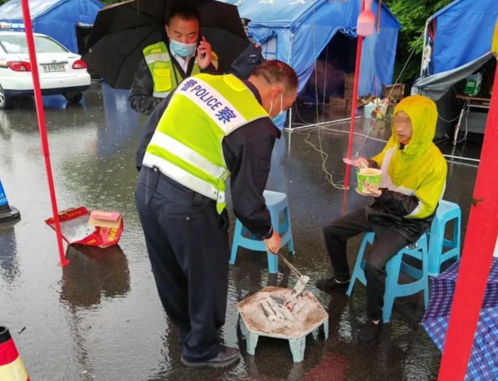 当时雨下得非常大,民警立即靠边停车,将该男子叫上警车,发现该男子脸色苍白,浑身都冷得发抖。民警立即开启热风为其取暖。经询问得知,该男子姓陈,自安顺镇宁来贵阳打工,没有找到工作,身上的钱也用完,准备徒步回家。21日晚从龙洞堡起程沿环城高速走了整整12个小时,路上一点东西也没有吃。民警程俊立即向高速支队指挥中心汇报,经支队对接,高速三大队民警将该男子送到花安高速广顺东收费站,与那里的长顺县公安局广顺派出所民警接洽。