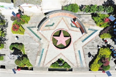 图为大木村内的红色文化广场(6月30日摄,无人机照片)。