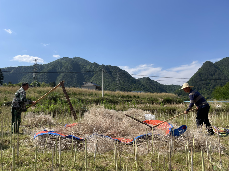 立夏时节,贵州省岑巩县龙田镇总院村杂交水稻制种、油菜种植基地一派繁忙景象,一大批群众在田间地头欢声笑语,群众正利用晴好天气加紧收割油菜籽、翻犁打田,为移栽杂交水稻秧苗做准备。