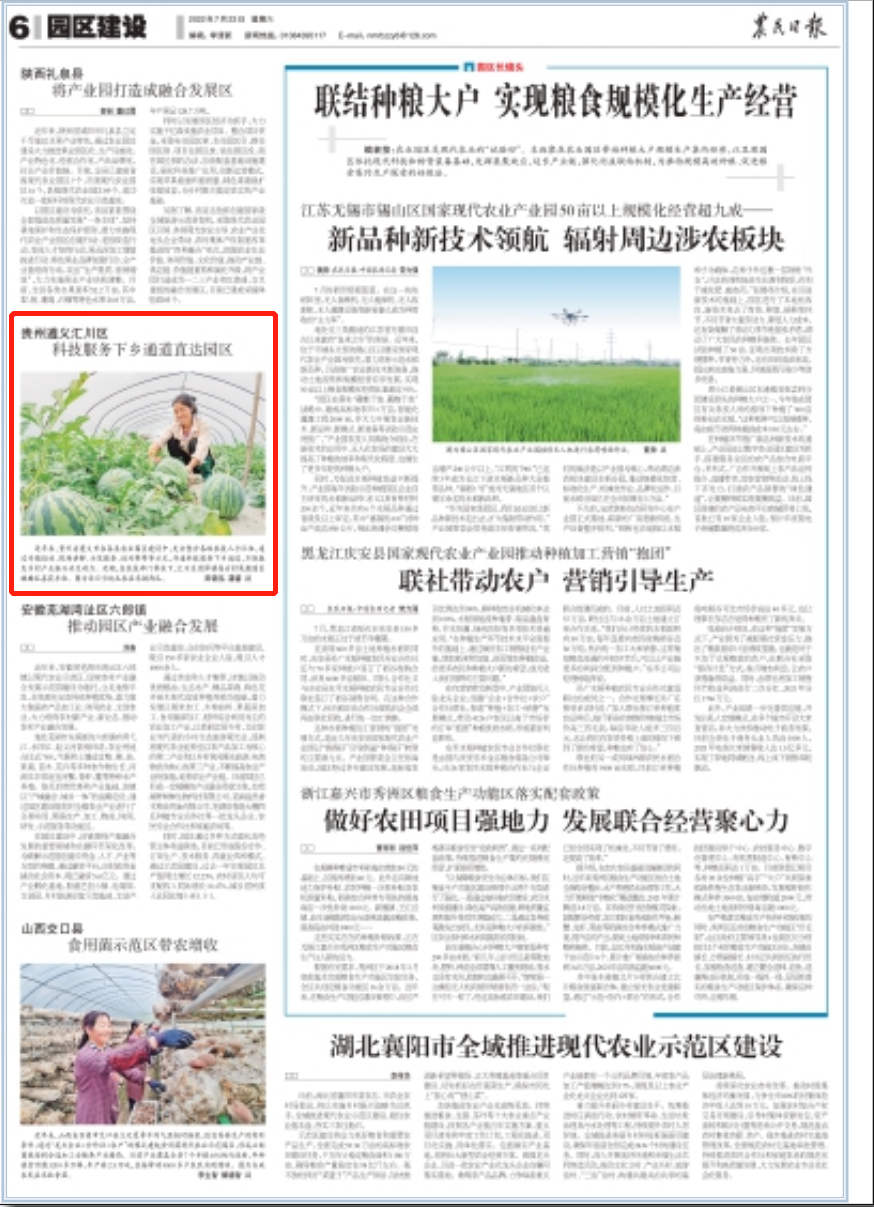今天(7月23日),《农民日报》刊发图片新闻《科技服务下乡通道直达园区》。