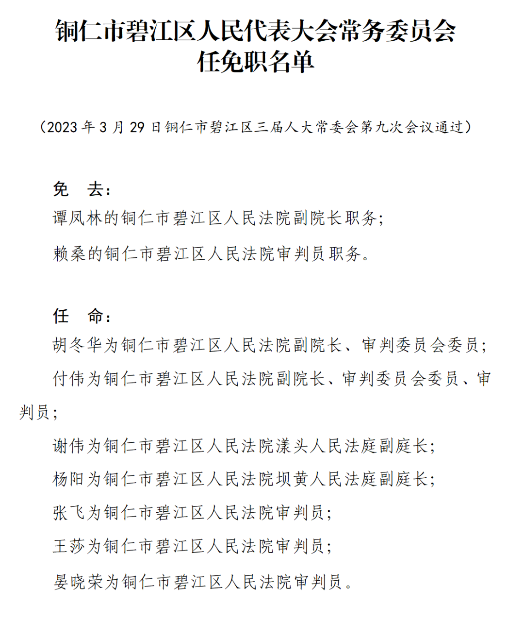 经2023年3月31日剑河县第十八届人大常委会第14次会议表决,决定任命: