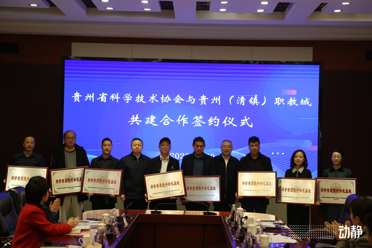 3月20日,贵州省科学技术协会与贵州清镇职教城管委会及15所职业技术学校达成共建合作,省科协向清镇职教城管理委员会授牌“科普教育示范城”,向各院校授牌“科学素质提升示范基地”。