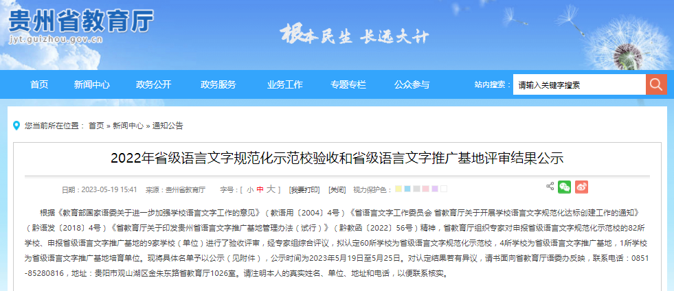 对认定结果若有异议,请书面向省教育厅语委办反映,联系电话:0851-85280816,地址:贵阳市观山湖区金朱东路省教育厅1026室。请注明本人的真实姓名、单位、地址和电话,以便联系核实。