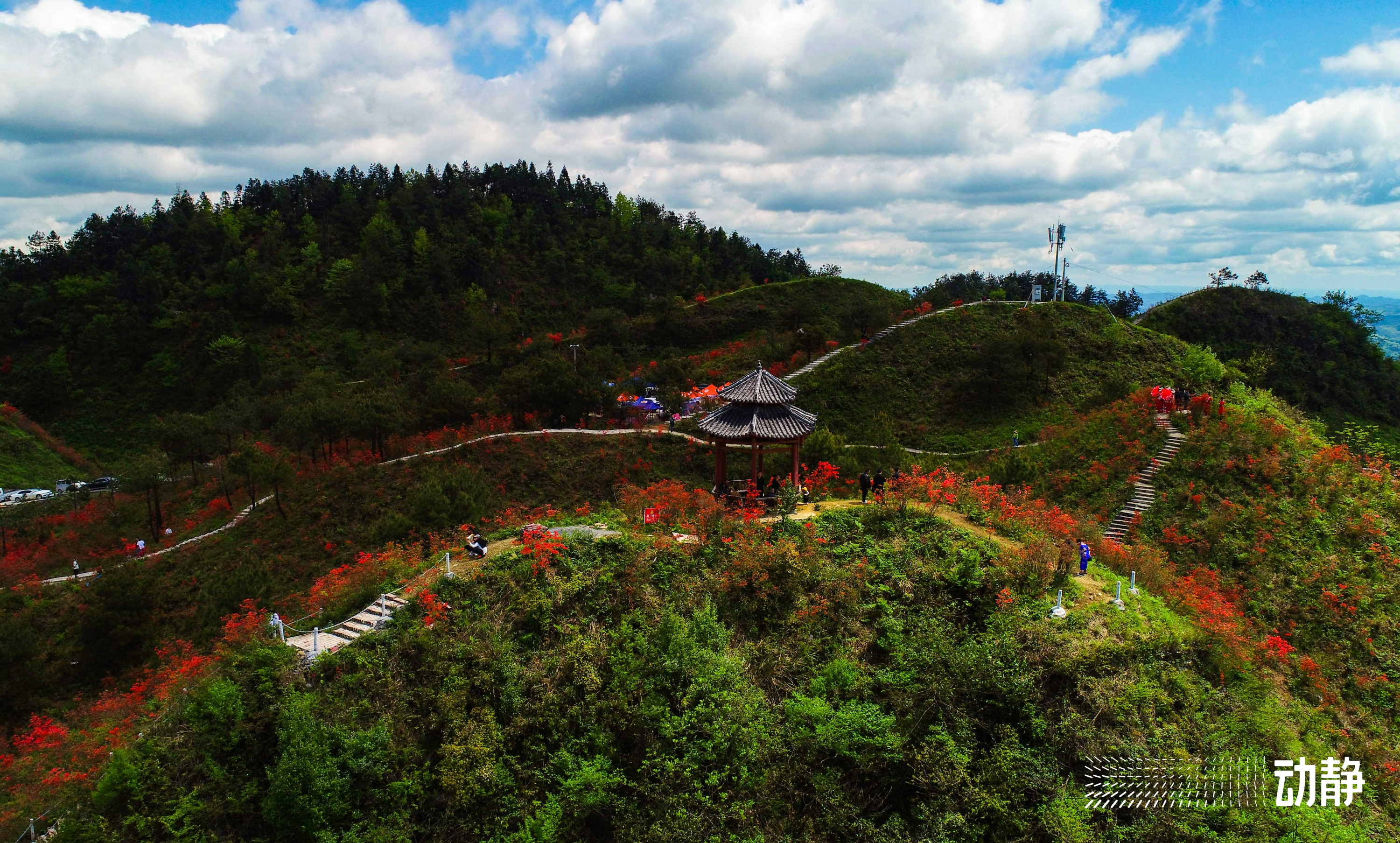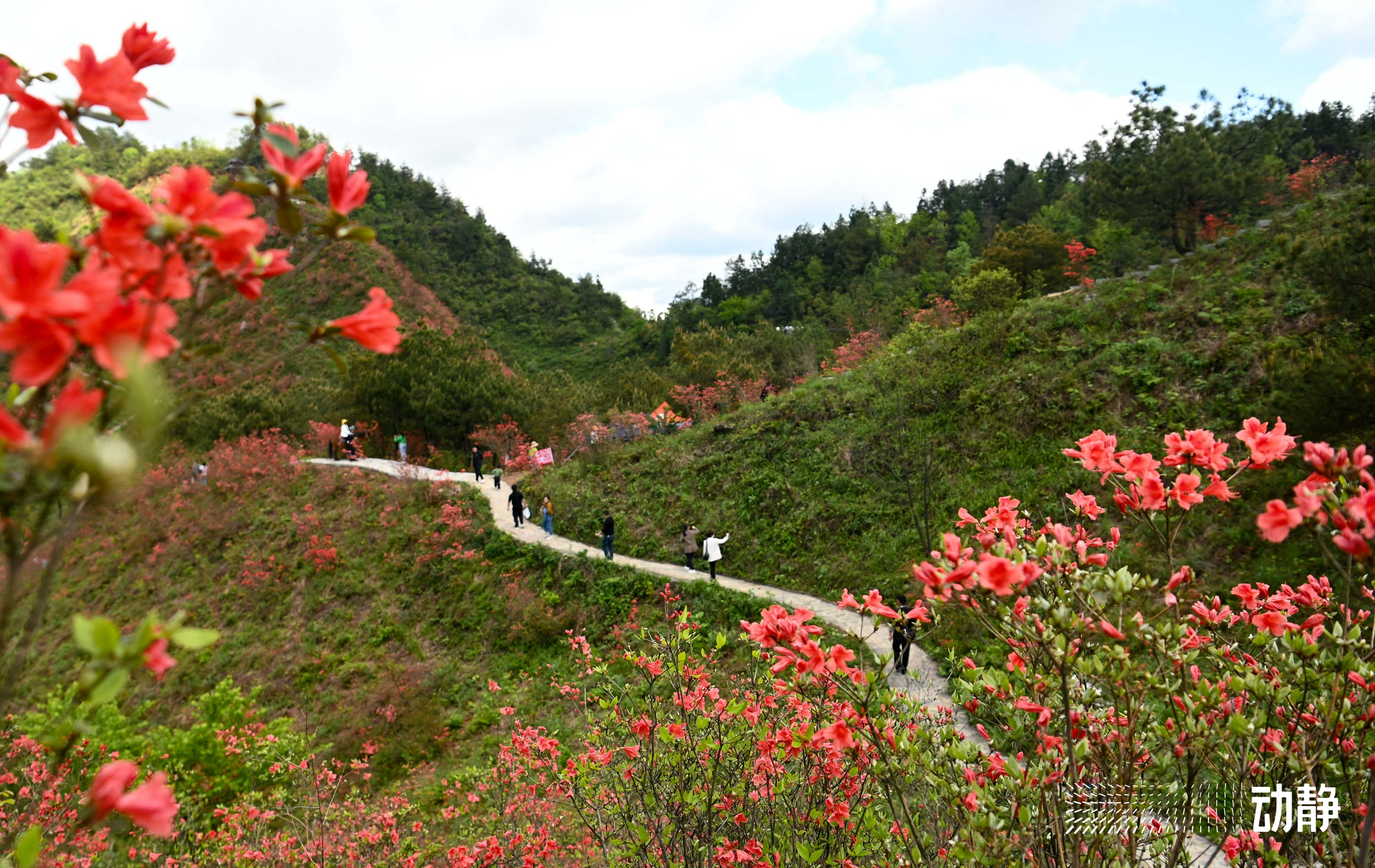 眼下,松桃苗族自治县长坪乡飞灵山景区的映山红迎来花期。趁着好天气,许多游客前往飞灵山景区游玩赏花,徜徉在花海里。