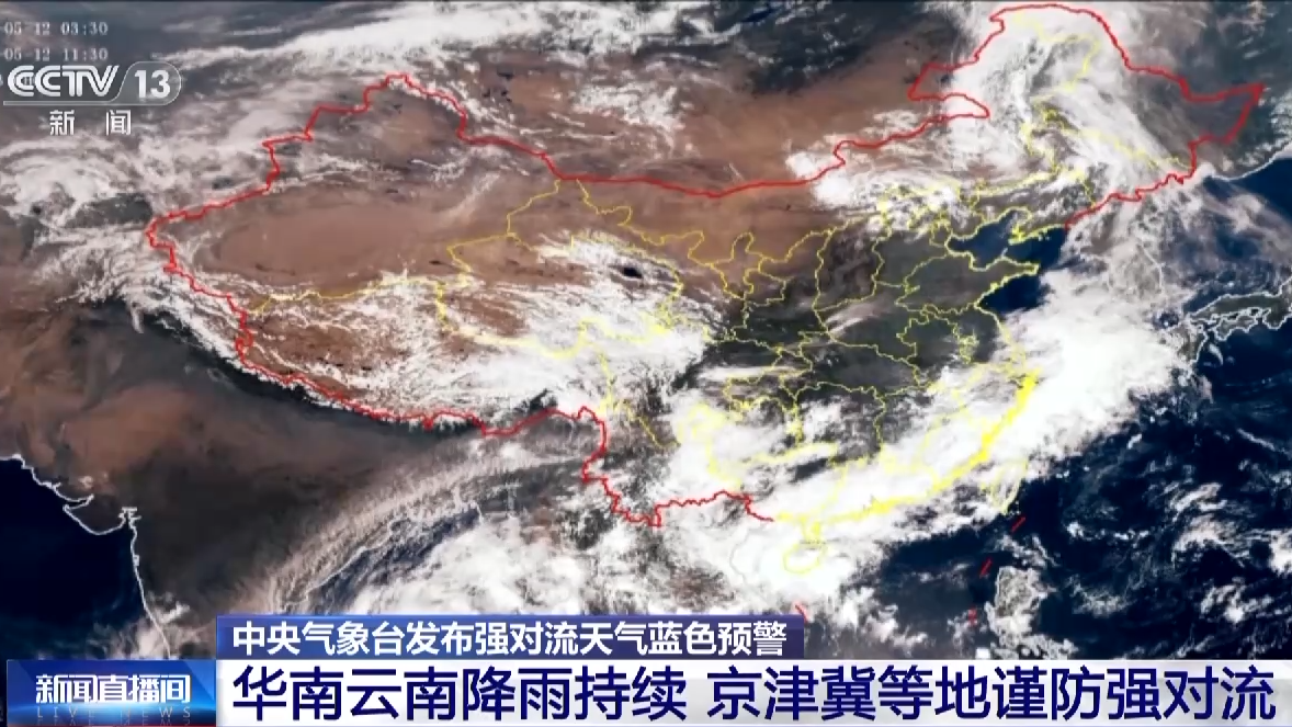 今明两天(12日—13日),华南地区以及云南等地较强降雨仍会持续,局地有暴雨或大暴雨;另外,今天,京津冀、内蒙古等地局地有雷雨,中央气象台上午10点发布强对流天气蓝色预警。