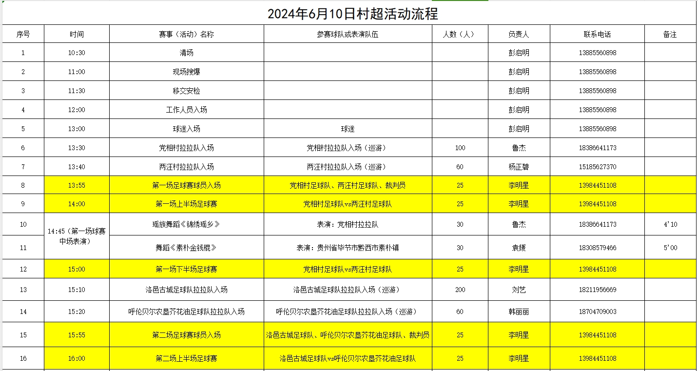 “村超”的端午节长啥样,据说由于来比赛的球队太多,活动的新花样更多,导致活动流程每天都在变化,动静记者在下班前拿到6月7日版的最新活动流程表,总结一句话就是: