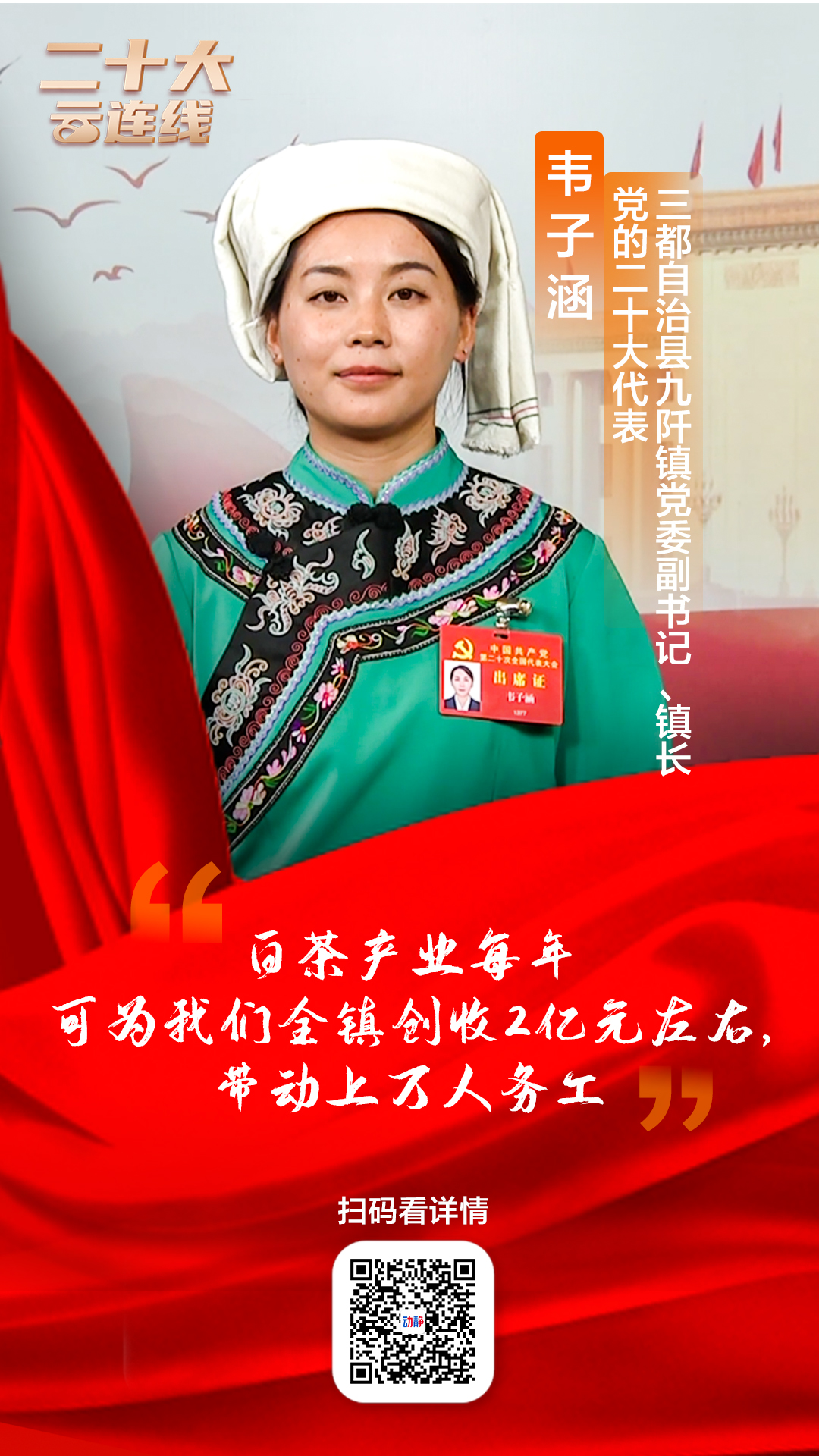 今天,走进“二十大云连线”动静虚拟演播室的是一位“90后”基层干部——党的二十大代表、三都水族自治县九阡镇党委副书记、镇长韦子涵。