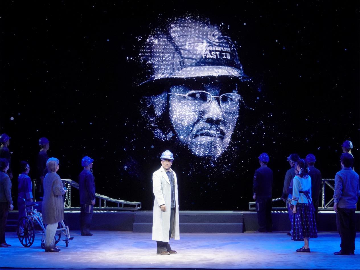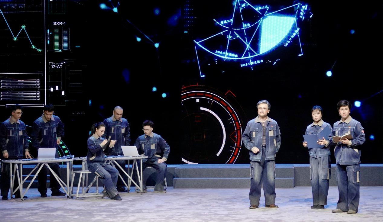京剧《天眼》由一级编剧曹海玲执笔,中国话剧协会副主席钟海执导,生动再现了南仁东及其团队历时二十余载、呕心沥血建造“中国天眼”的艰辛历程,以及贵州人民倾力支持国家天文事业的动人故事。2016年9月25日,位于贵州省黔南州平塘县大窝凼的500米口径球面射电望远镜(FAST)正式落成启用,开启中国人探索宇宙的新篇章。在“天眼”启用9周年这一特殊时刻,贵州京剧院以传统皮黄声腔传颂科学理想,借程式化表演刻画科技工作者的赤子之心,演出意义深远,现场掌声不断,气氛热烈。