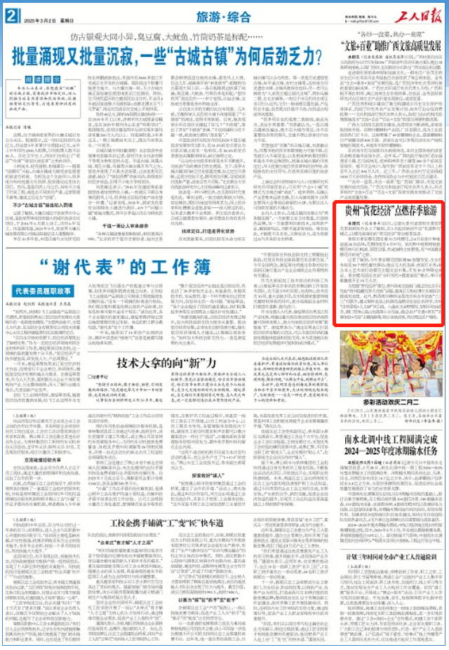 今天(3月2日),《工人日报》刊发新闻《贵州“赏花经济”点燃春季旅游》。