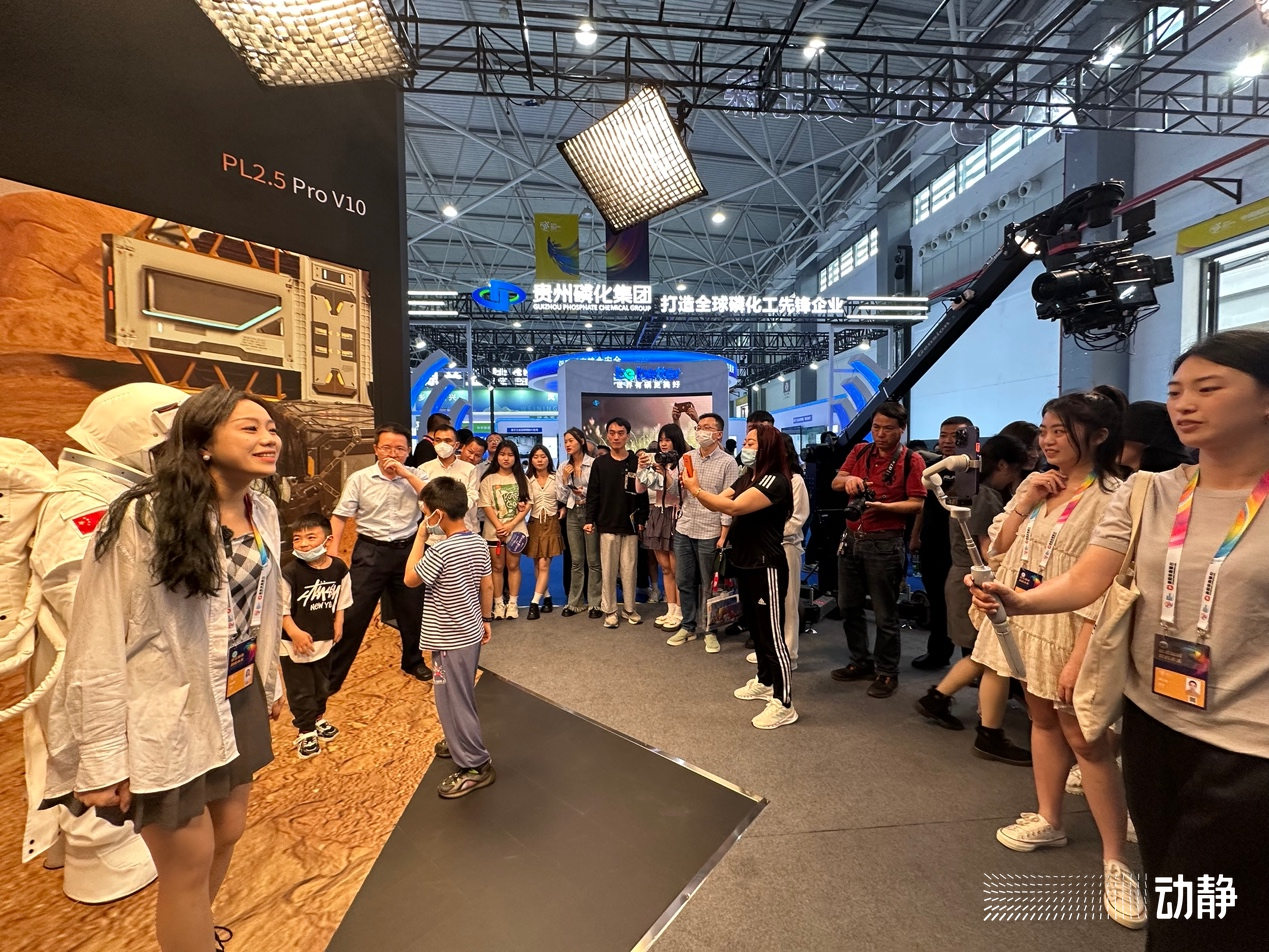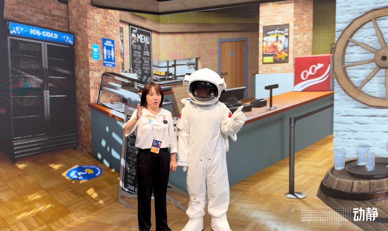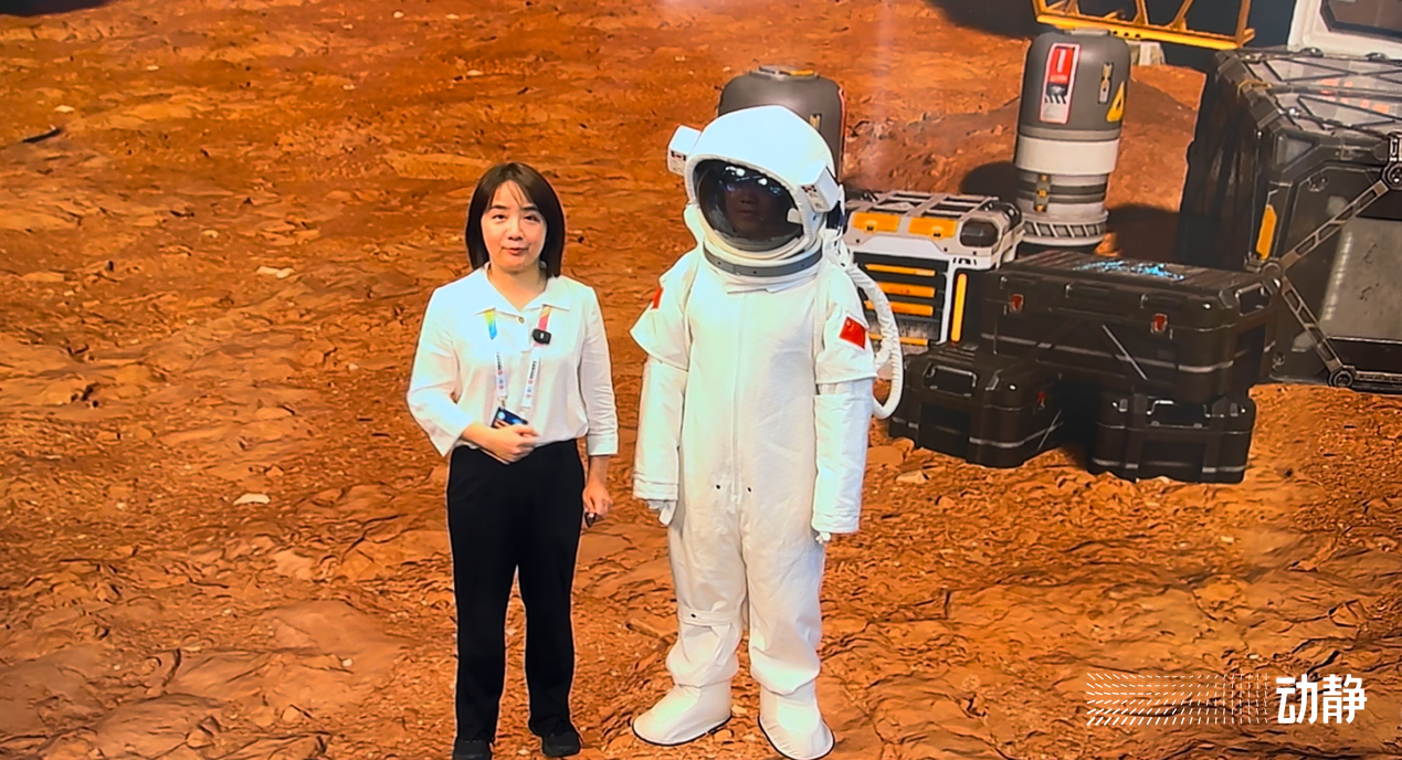 而在产业数字馆,虚拟现实摄影棚吸引了众多观众的注意和打卡,在这里每一个人只要站到虚影摄影棚里,就可以与宇宙任何一个地方进行拍照打卡,从咖啡馆到演播厅,再到体育馆,甚至到火星,场景切换只在几秒钟之内就可以实现。