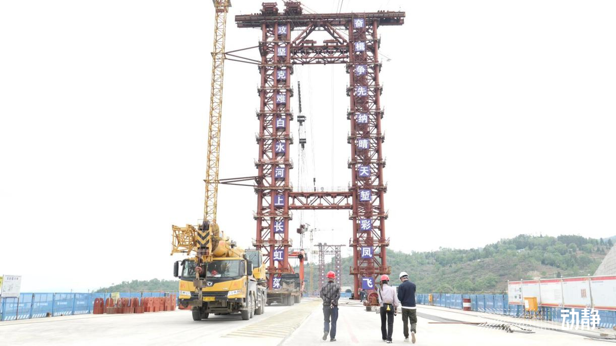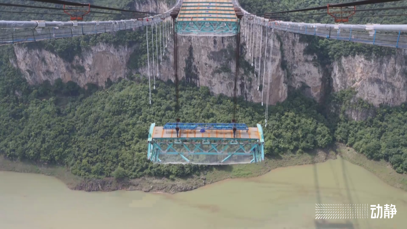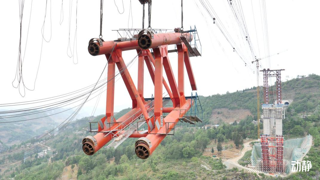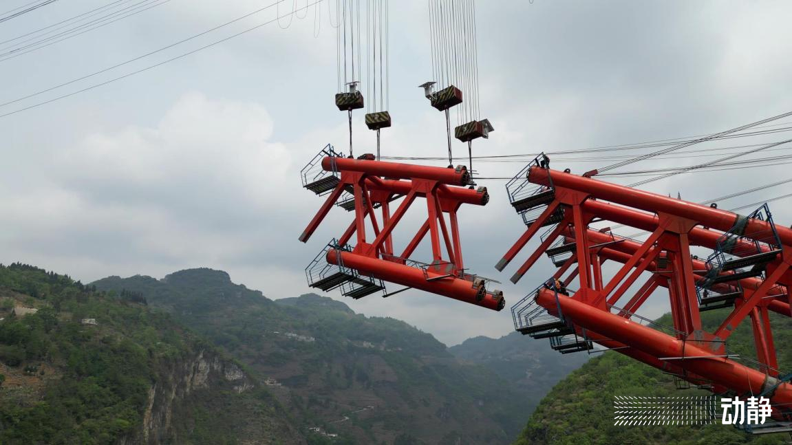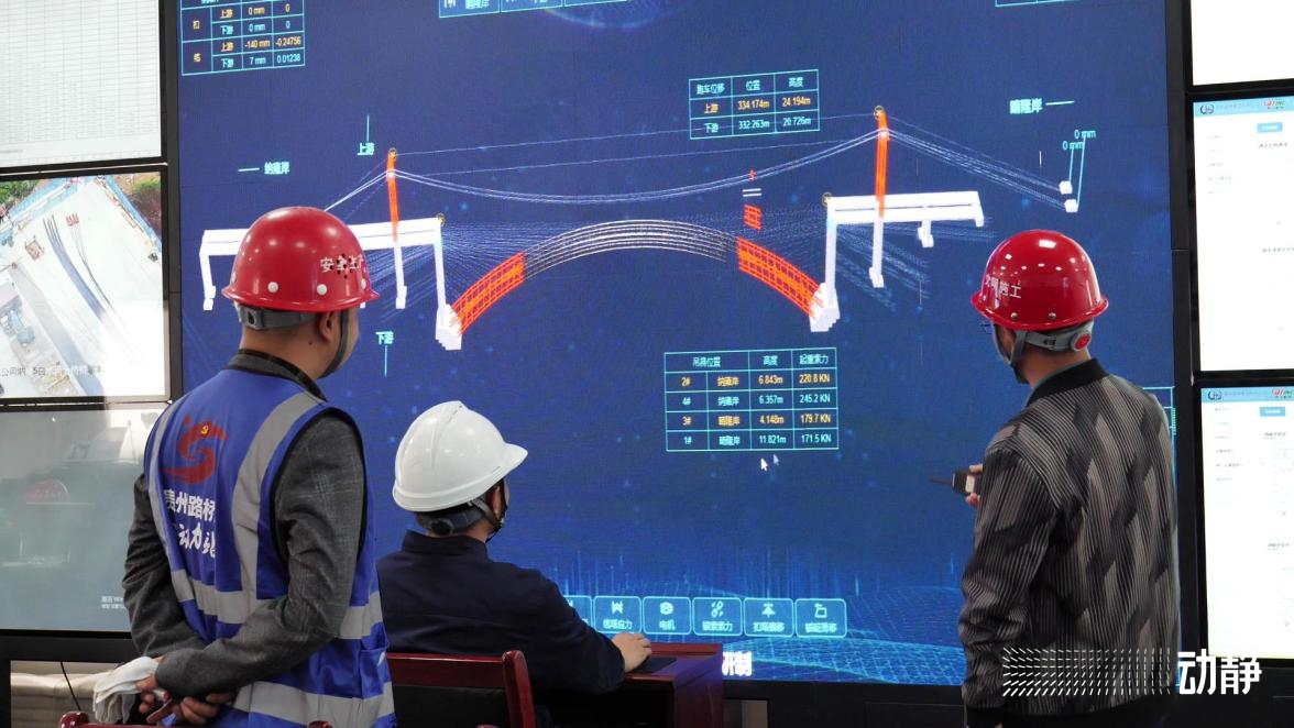 贵州路桥集团黔航公司副总经理、总工程师左卿介绍:“在主塔、吊具上总共安装了14个移动站和感应集成,吊装过程中每一个阶段的位置都能够实时地显示出来,再与设计方案对比调整,确保精准、安全。”