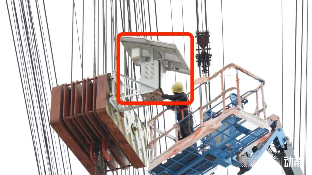 北斗定位技术团队在塔顶两端安装了2个北斗定位移动基站,塔顶因重力牵引,发生任何偏移角度,细微到毫米,北斗卫星都能接收并反馈。