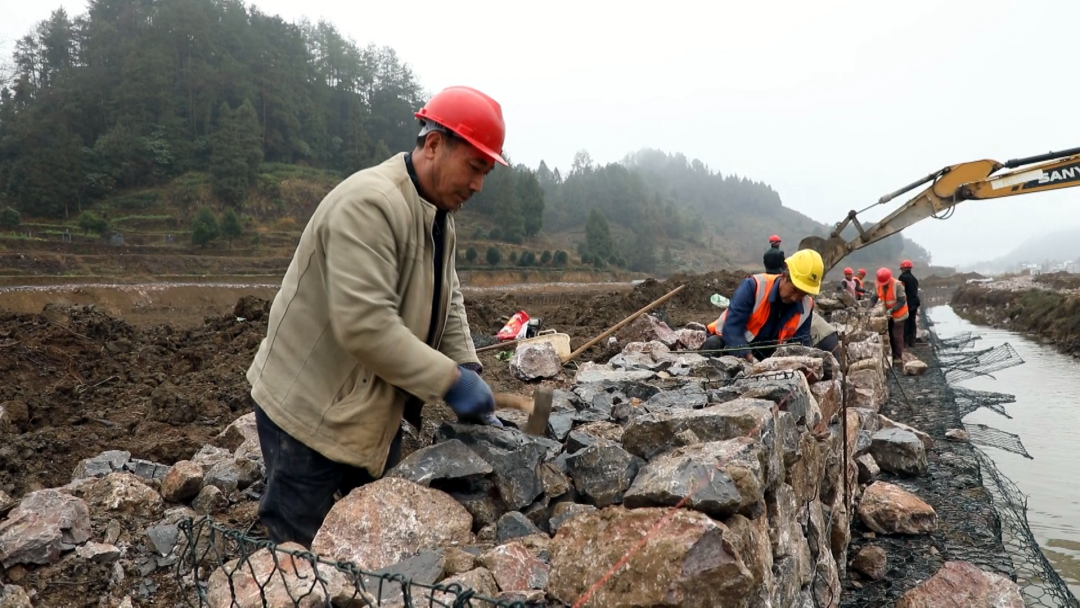 绥阳镇新冈村高标准农田建设项目负责人李黔说:“我们正月初七就已经复工了,现在每天现场有50多名工人正在赶工,我们争取在三月中旬完成我们的项目收尾工作。”