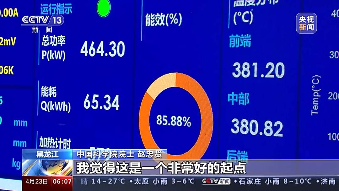 中国科学院院士 赵忠贤:这台设备走了一条新的技术路线,利用金属在磁场中的运动产生涡流的方式来加热。从效果来讲,有助于节能减排。我觉得这是一个非常好的起点,一个高新技术和传统产业的结合,我认为这是未来传统产业发展一个非常重要的方式。