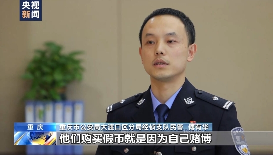 重庆市公安局大渡口区分局经侦支队民警傅有华:据三名嫌疑人供述,他们购买假币就是因为赌博,缺钱,就想购买假币,自己平时买菜或者打牌用。他们购买价格以20元钱购买面额一百的假币。